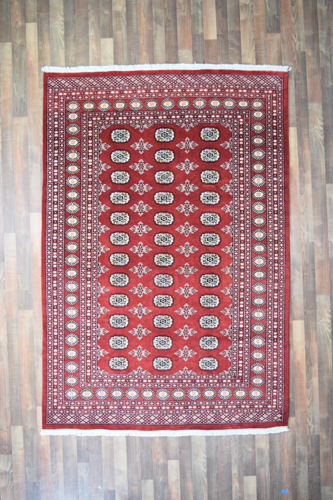 Royal Boukhara hand knotted oriental rug, approximately Boukhara 8'3x5'7. One-of-a-kind piece. See photos for details and condition.